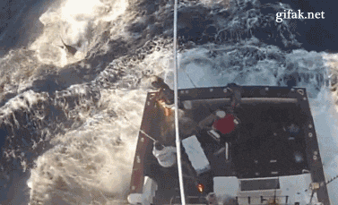 Black Marlin Jumps in Boat