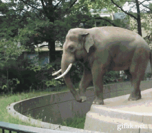 Elephant aims and gets a perfect shot on man at Berlin Zoo